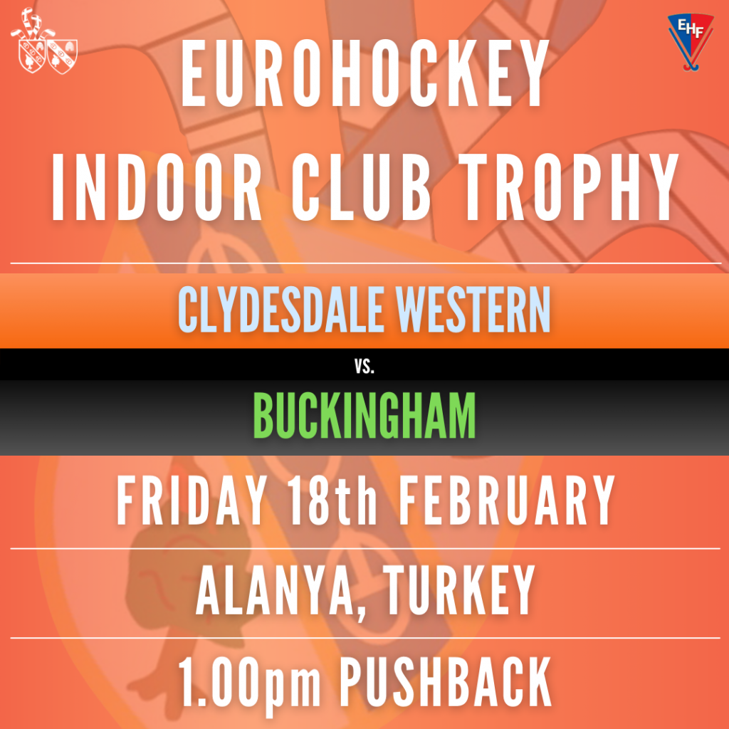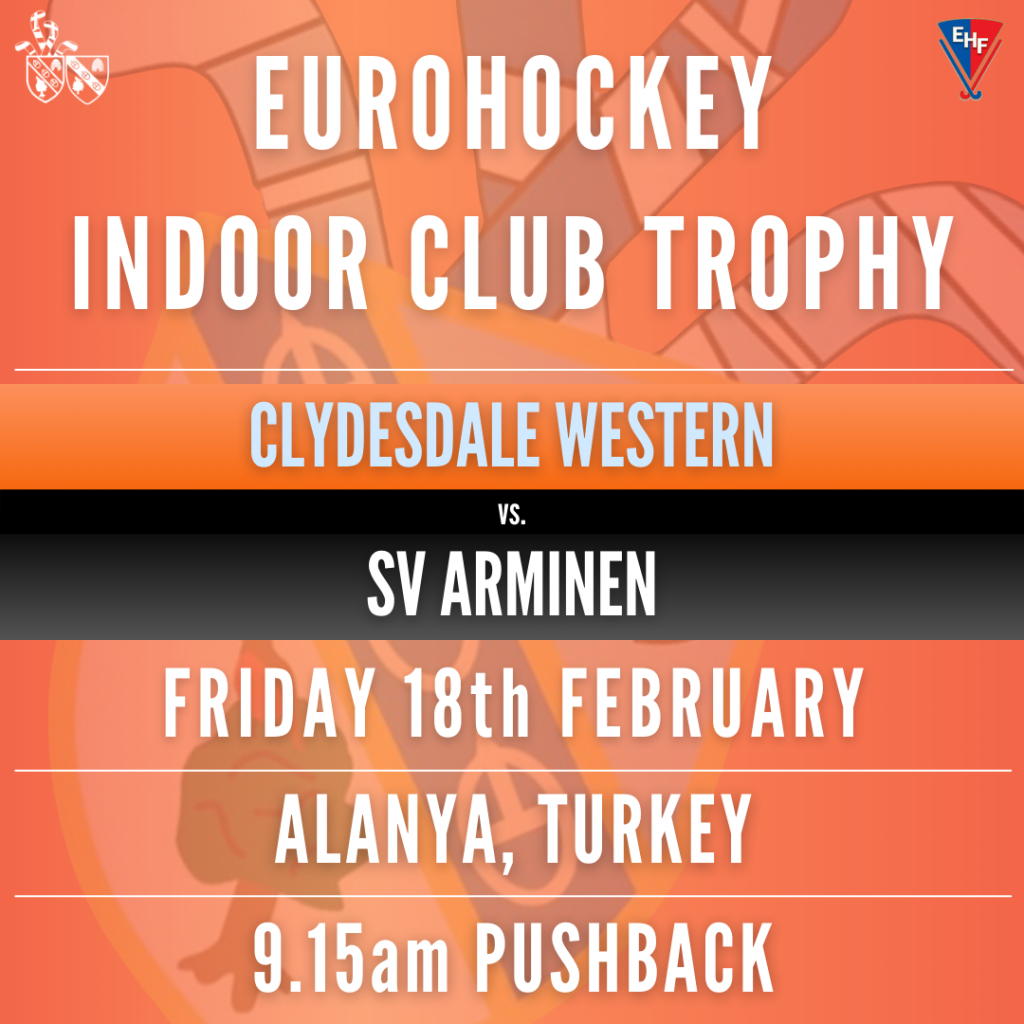 Clydesdale Western 1s will take to the court on Friday in the EuroHockey Indoor Club Trophy competition in Alanya, Turkey.