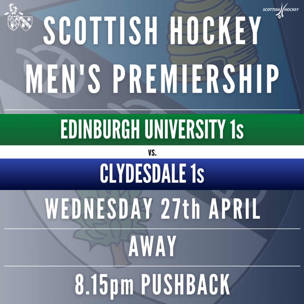 Clydesdale 1s visit Peffermill to face Edinburgh University Men’s 1s on Wednesday night in their bid to finish fourth in the Men’s Premiership this season.