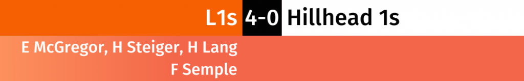 Forsyth’s selection was unchanged for both games from the side that beat Erskine Stewart’s Melville 1s on Thursday night. The deadlock in Saturday’s contest against Hillhead was broken in the opening quarter through Emma McGregor’s front stick strike from the top of the circle. The home side doubled their lead in the second quarter when a save from McGregor’s initial shot was rebounded into the goal by Holly Steiger. After half time, Jenny Eadie made it three before Holly Steiger teed up Fiona Semple in the fourth quarter to give the L1s a comfortable four goal win.