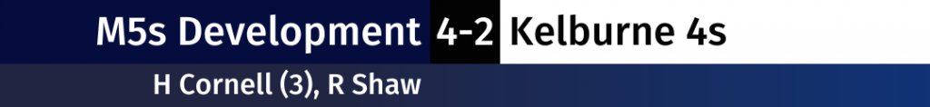 Spencer Cox struck twice in the M4s Men’s West District Division Two win at home to Rottenrow 2s. Marcus Nairn was the Titwood side’s other scorer in a 3-1 win. Returning to Men’s West District Division Three, Hamish Cornell scored his first ever hat-trick at senior level in the M5s Development 4-2 win over Kelburne 4s at Titwood. Roddy Shaw scored the M5s Development other goal.