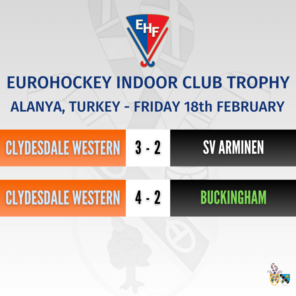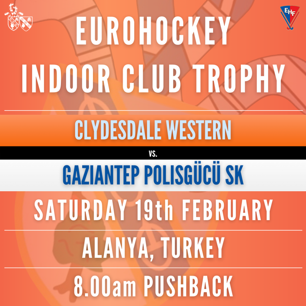 Those two wins undoubtedly capped off a stunning day’s indoor hockey for Clydesdale Western who will no doubt be in buoyant mood going into their next two games on Saturday, starting at 8.00am (GMT) against Gaziantep Polisgücü SK. At 1.00pm, the Titwood girls then face SK Slavia Prague. There seems to be a clean bill of health following Friday’s games. Semple unfortunately took a bad knock colliding with the rebound boards, but it is not thought to be serious to rule her out of Saturday’s action.