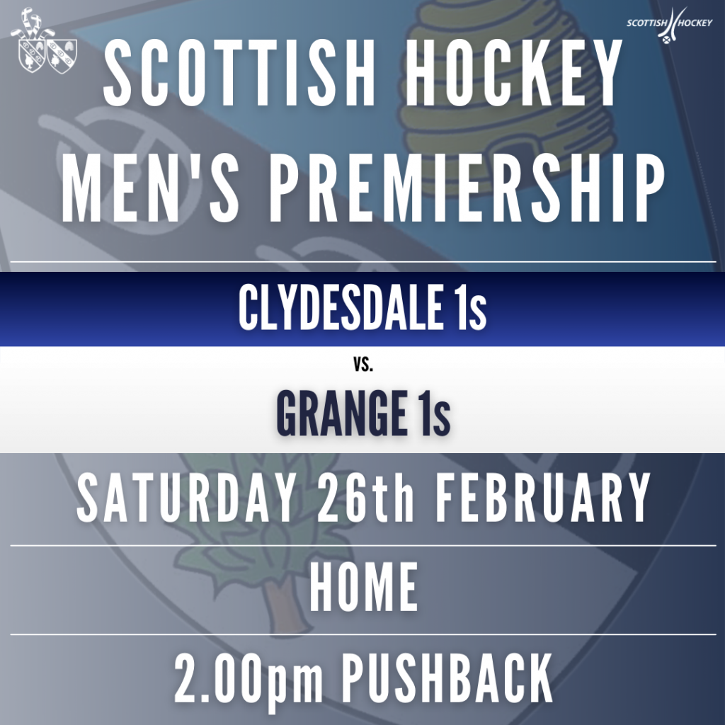 Clydesdale 1s are back in Men’s Premiership action at home for the first time this year when they host Grange 1s from 2.00pm.