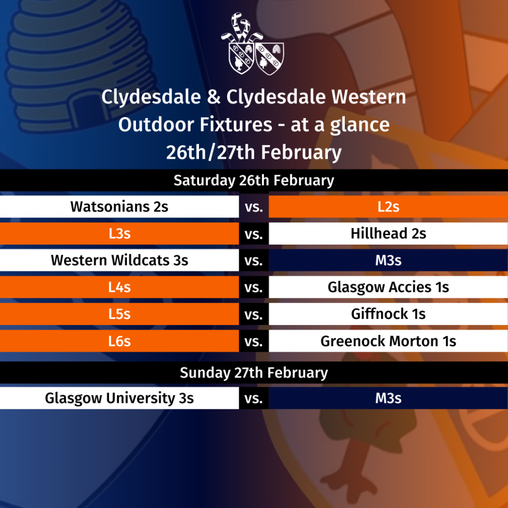 There are a host of games for Clydesdale & Clydesdale Western teams over the weekend starting as early as 10.30am on Saturday.
