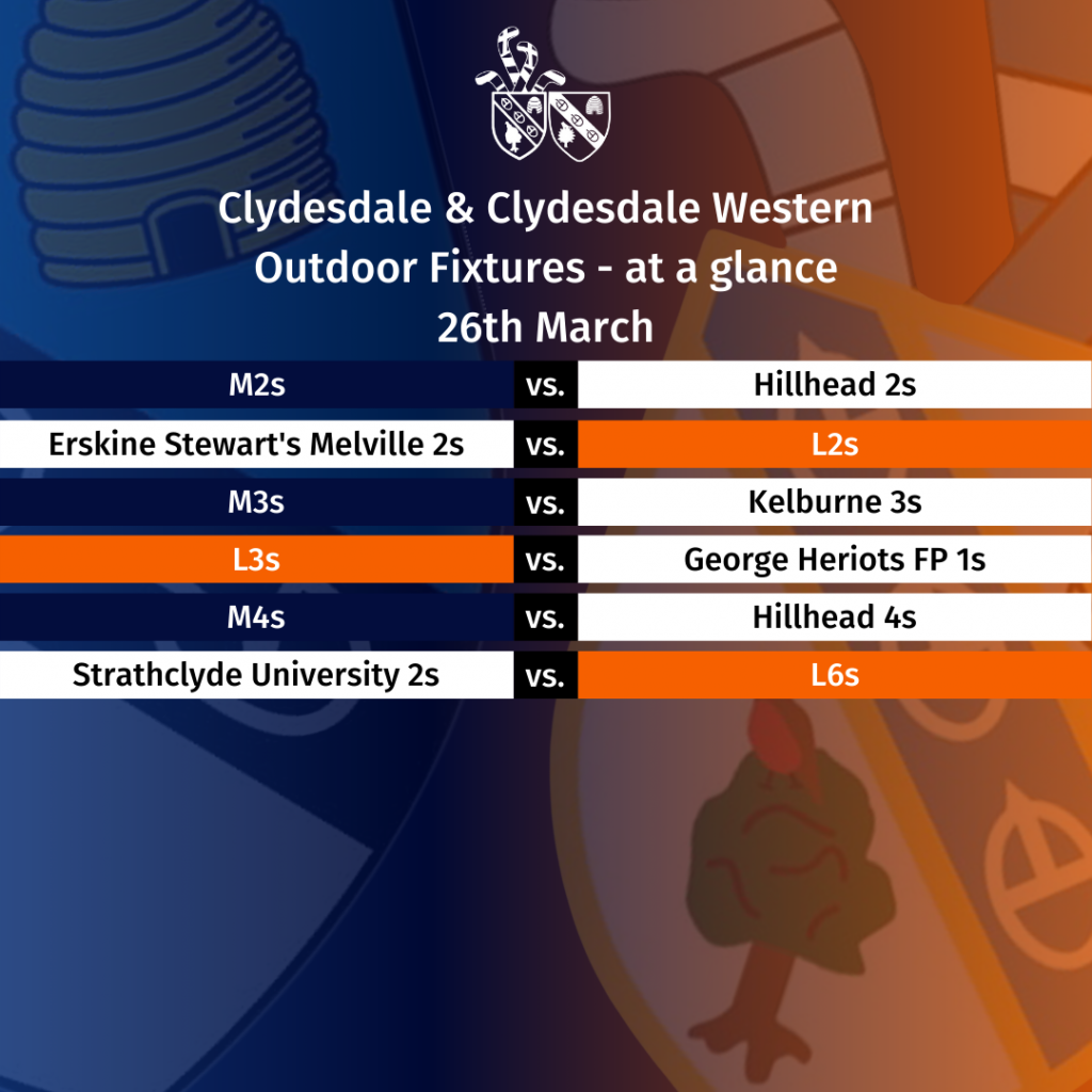 A number of games for Clydesdale & Clydesdale Western take place at Titwood on Saturday, starting with a 10.30am pushback for the M4s.