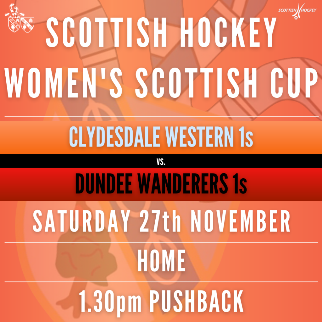 Clydesdale Western 1s will play the final part of back-to-back games against Dundee Wanderers 1s in the Second Round of the Women’s Scottish Cup at Titwood on Saturday from 1.30pm.