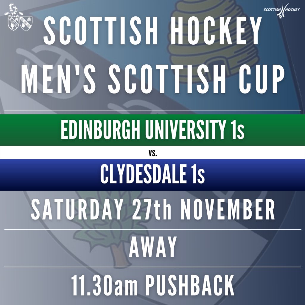 An early pushback of 11.30am at Peffermill against Edinburgh University 1s is what awaits Clydesdale 1s in the Men’s Scottish Cup Second Round on Saturday.