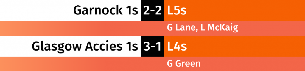 The following evening in Women’s West District Division One, the L4s were unfortunately beaten 3-1 at Glasgow Accies 1s. Gill Green’s goal proving to be no more than a consolation.