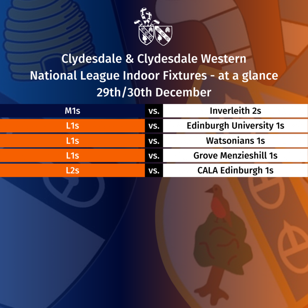 The L2s are also in action at Bell’s in the Coaching Hall on Sunday with a dead rubber clash in Women’s National Indoor Division Two against CALA Edinburgh 1s (10,10am). On Saturday, the M1s face Inverleith 2s from 10.25am in an equally insignificant match up in Men’s National Indoor Division Two at Dundee International Sports Centre.