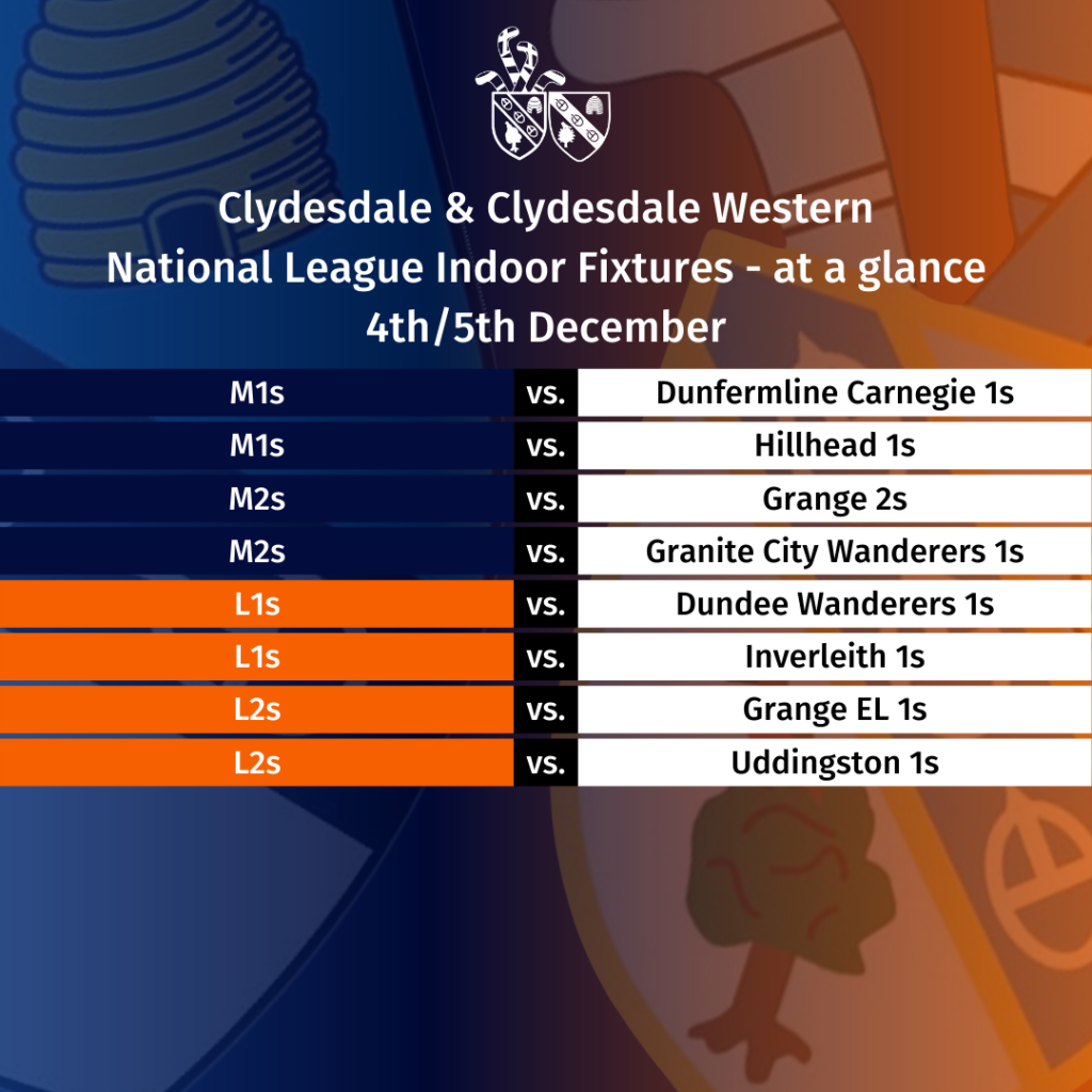 The M5s, M5s Development and L5s are all involved in rescheduled outdoor games. In Men’s West District Division Three, the M5s are at home to Dumfries 2s from 1.30pm and the M5s Development are away to play Hillhead 7s – 3.30pm pushback. The L5s complete the card of outdoor games with a 4.15pm start, facing Stepps 1s.