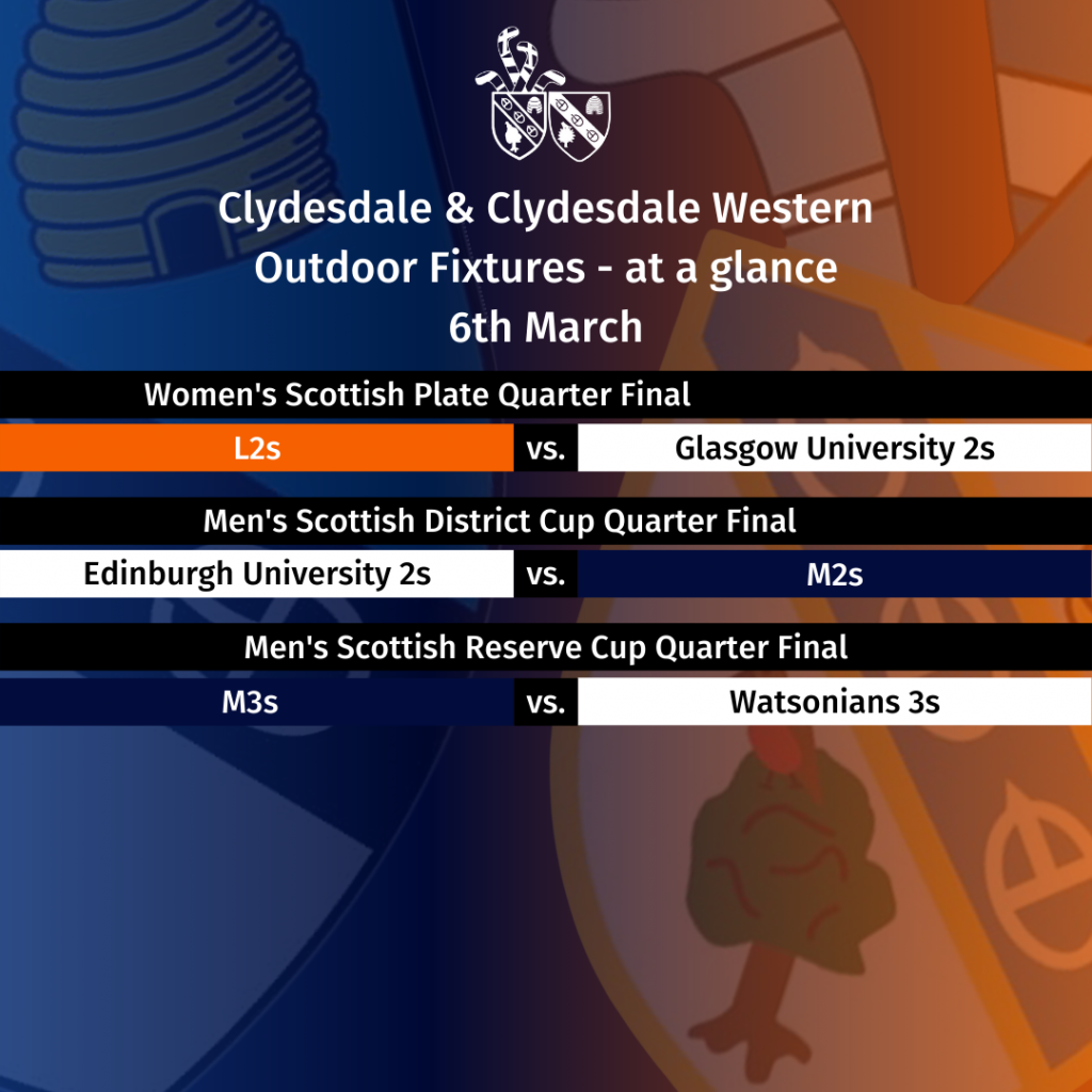 Donald Amour’s L2s side, meanwhile, host Glasgow University 2s at Hutchesons’ Grammar School from 2.00pm in the Women’s Championship A Division on Saturday before welcoming Inverleith 1s on Sunday in the Women’s Scottish Plate Quarter Finals at Titwood, 3.30pm pushback.