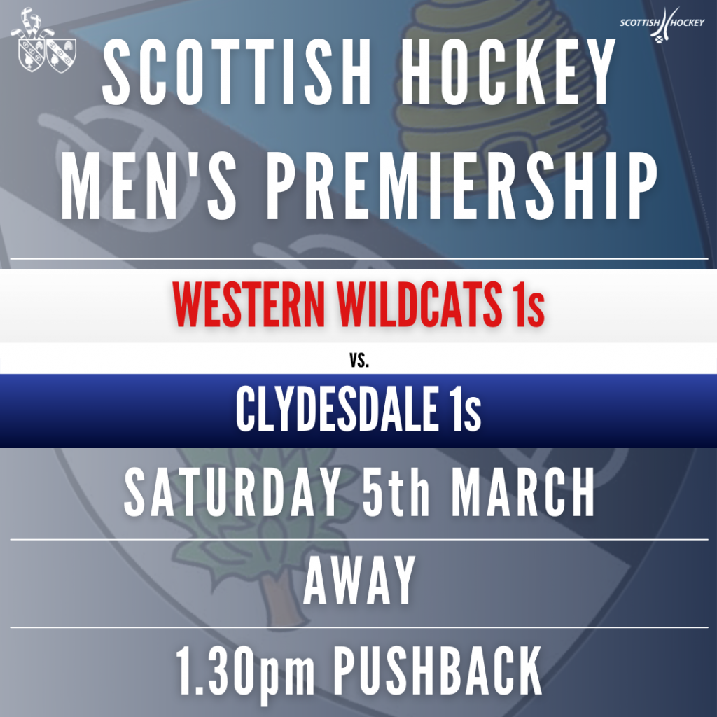 Clydesdale 1s are away to league leaders Western Wildcats in the Men’s Premiership on Saturday from 1.30pm.